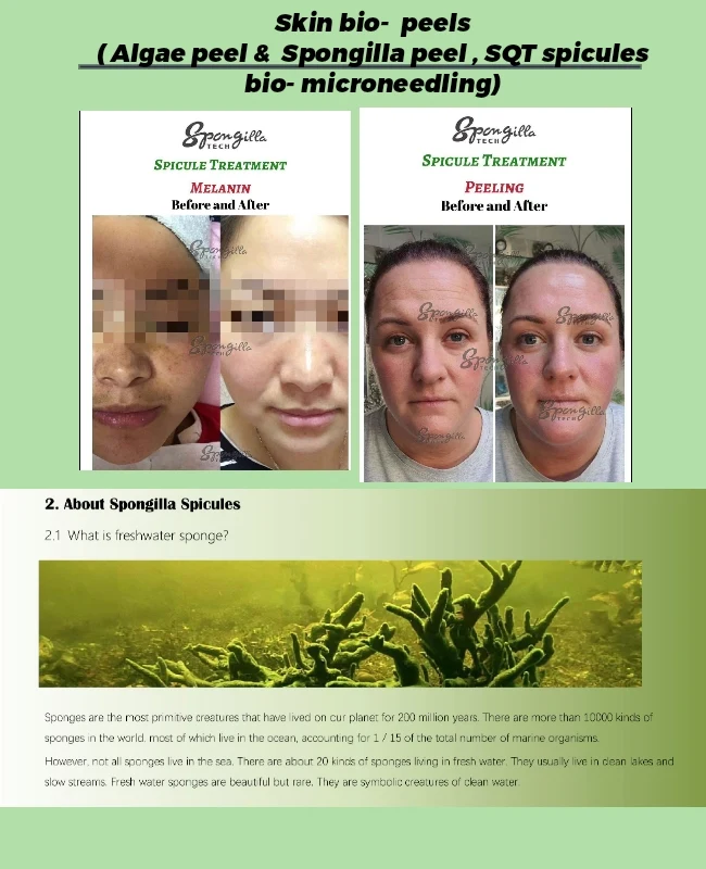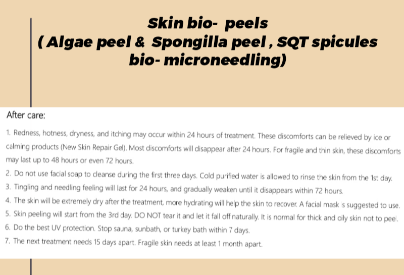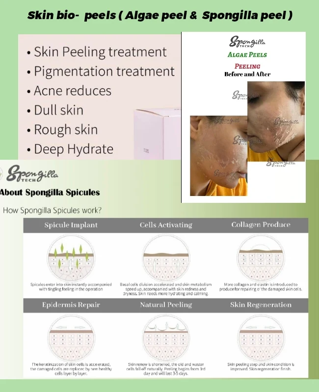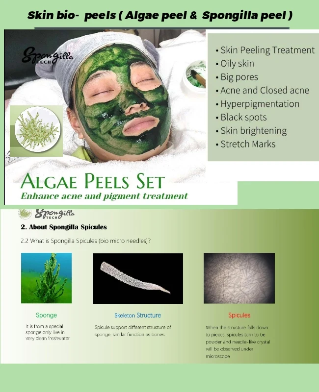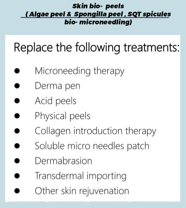 BIO peels such as Spongilla peel, Algae peel , SQT peel.