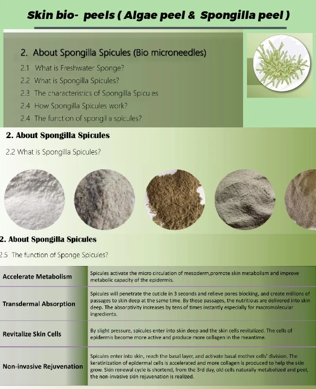 Spicules are tiny microscopic needles silica which penetrate the skin and causes rejuvenation and microneedling effects ,remove upper layer and enhance the growth of basal cells in the layers .