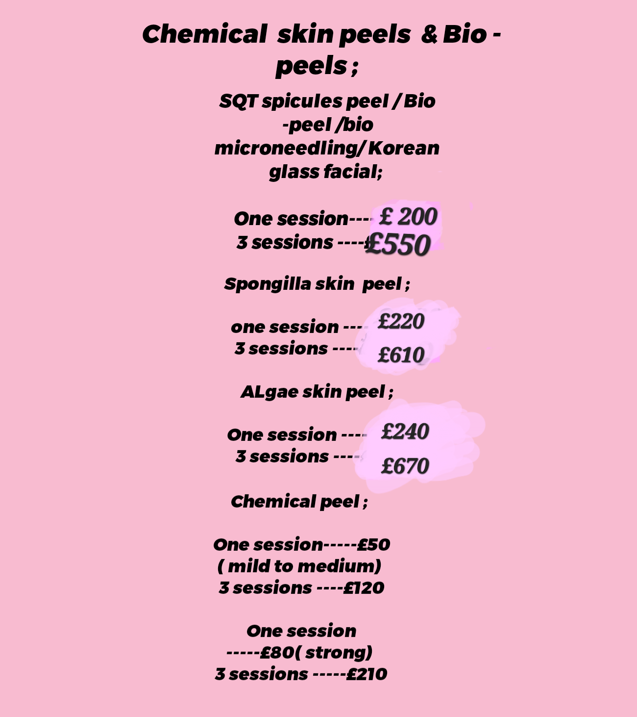 Different body areas bio peels ;