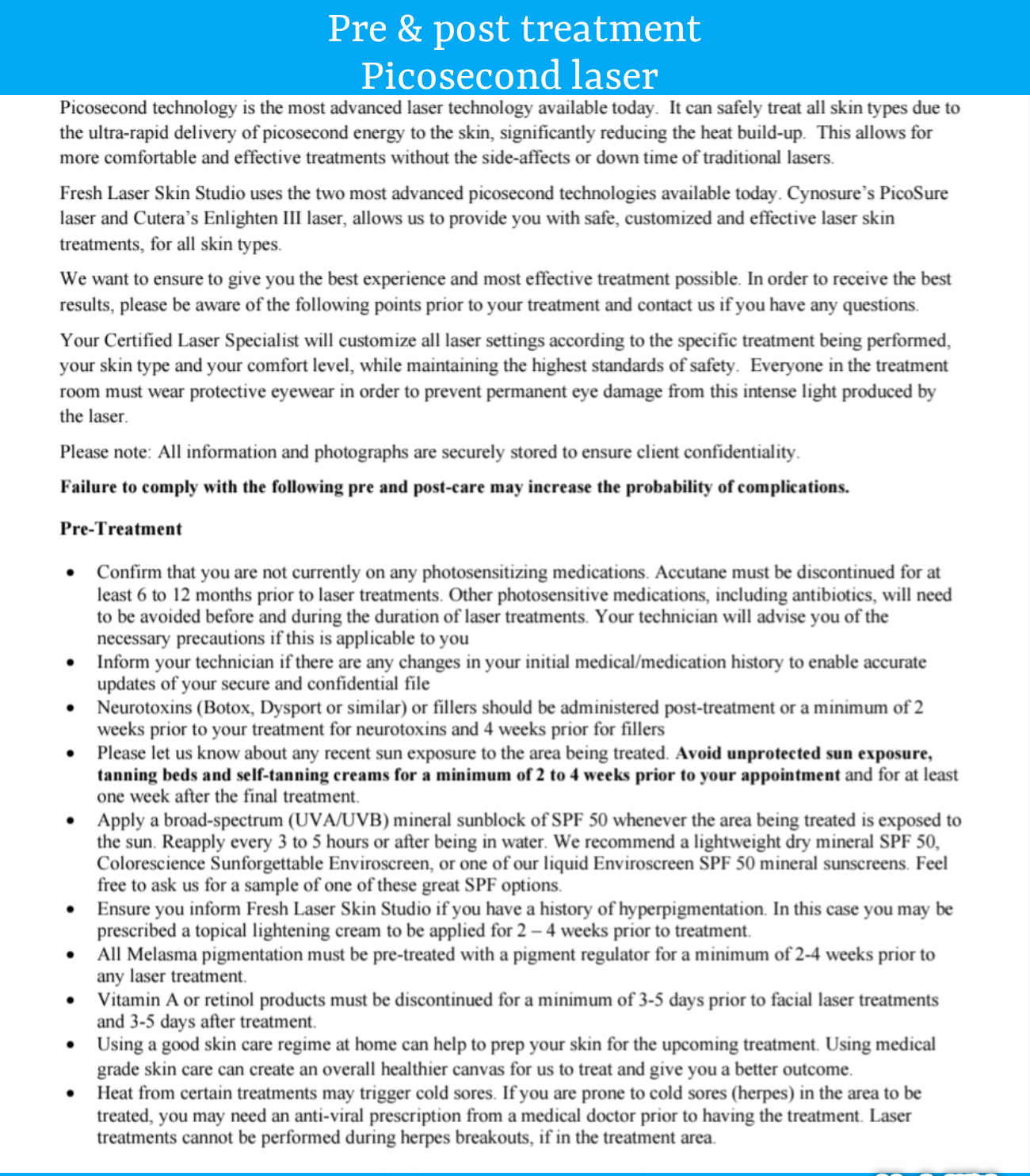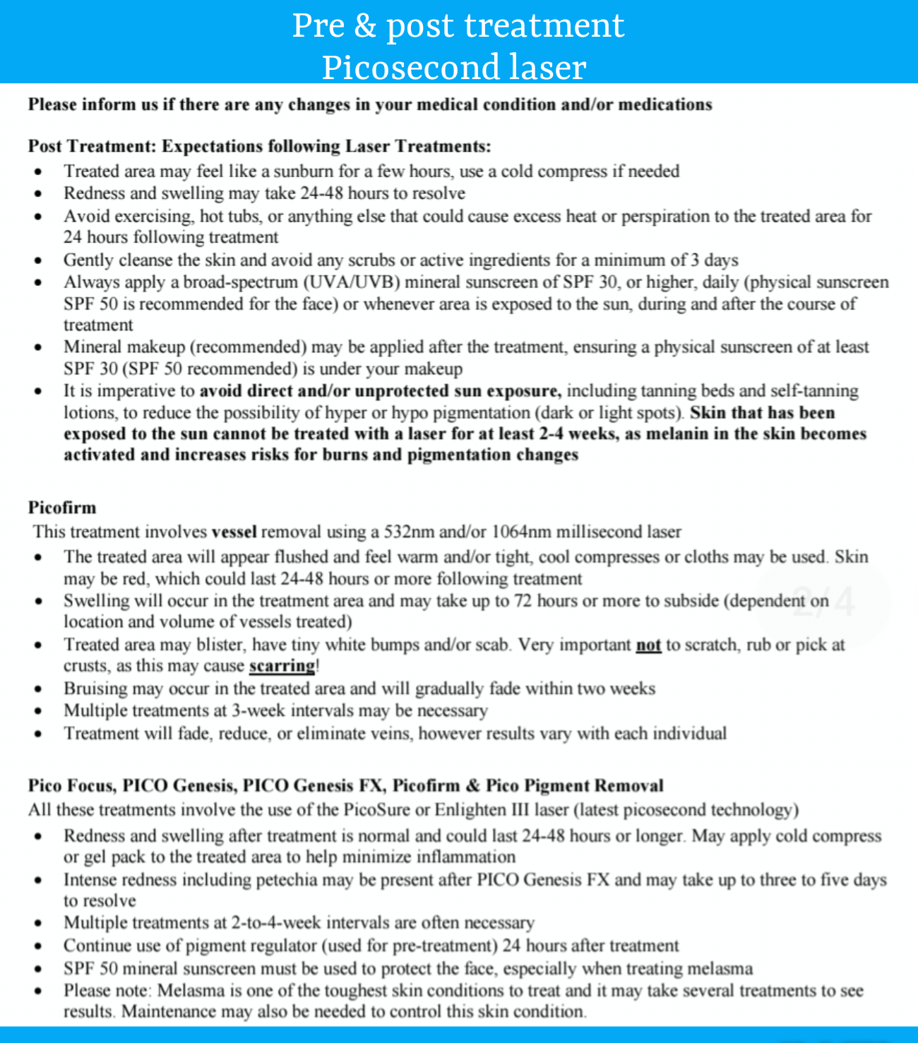 Picosecond laser for birth marks & c- section scars ; sizes small to large between 1×10cm