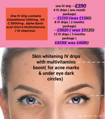 Skin whitening IV drip ( perfect strength) ;