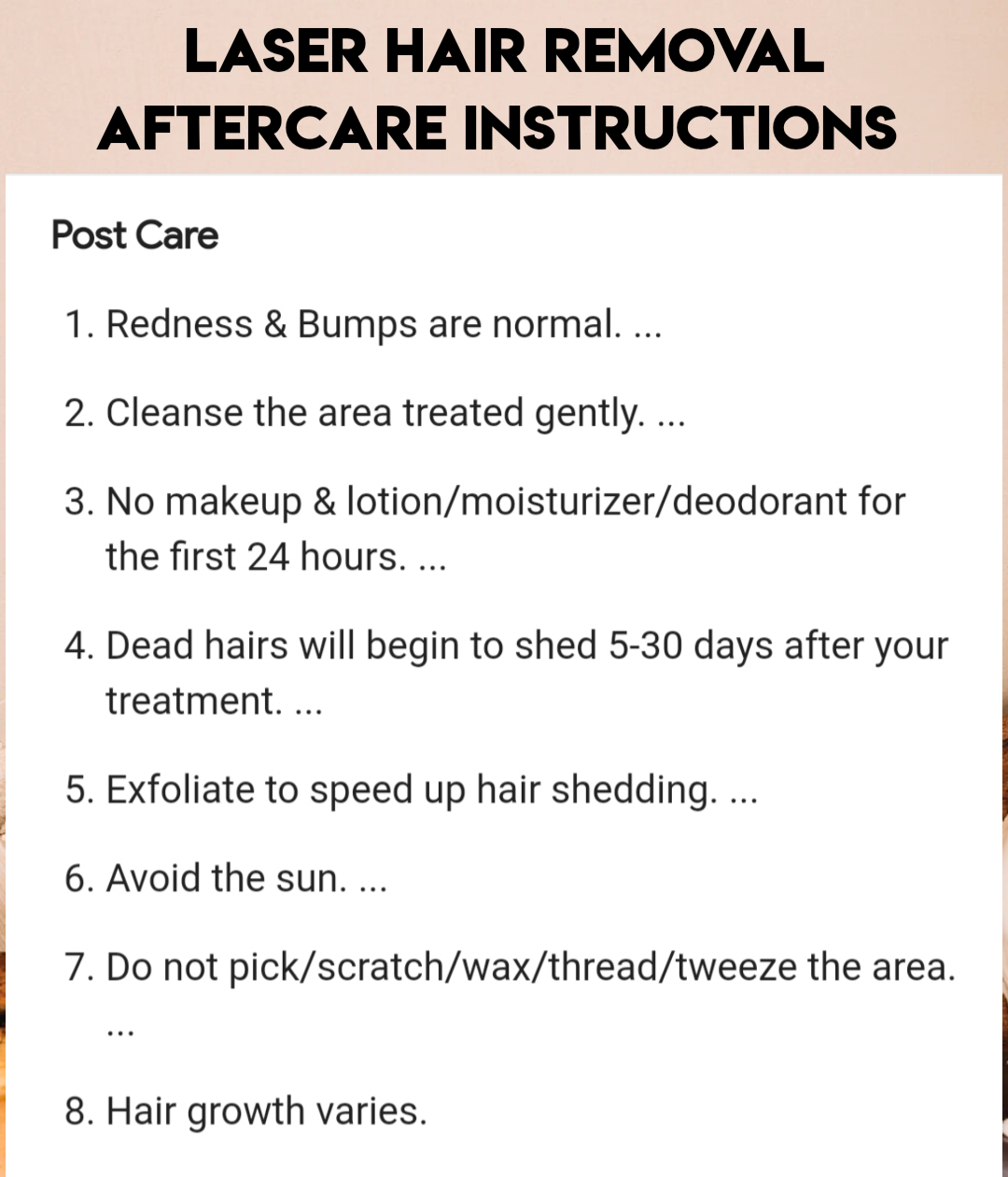 You are recommended to shave 1-2 days before laser treatment. (NO threading or waxing , only trimming and shaving should be done by client herself) .