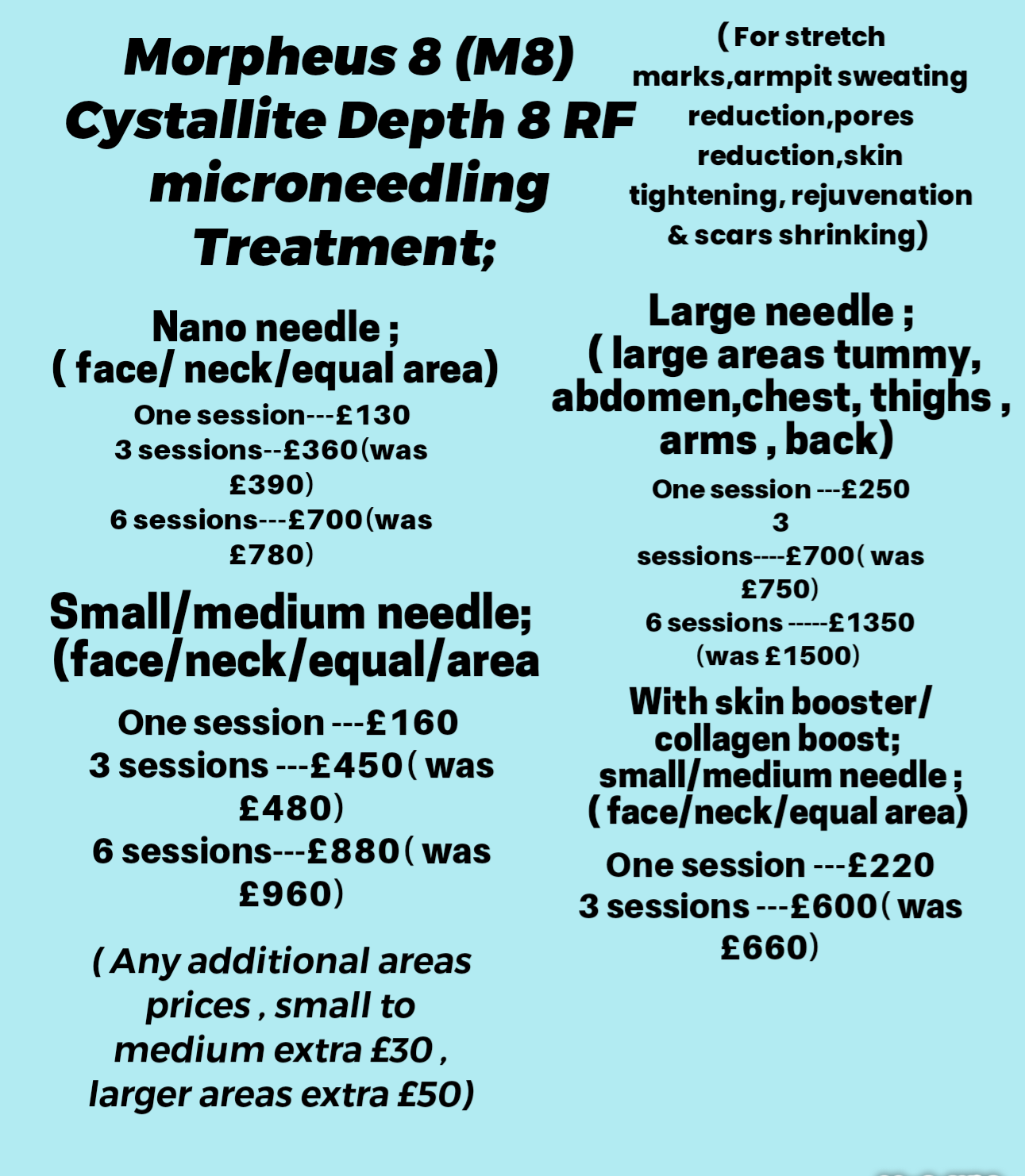 Face tightening, face lifting & firmness with Nano or fractional needle ( M8 microneedling) ; with skin tightening serums.
