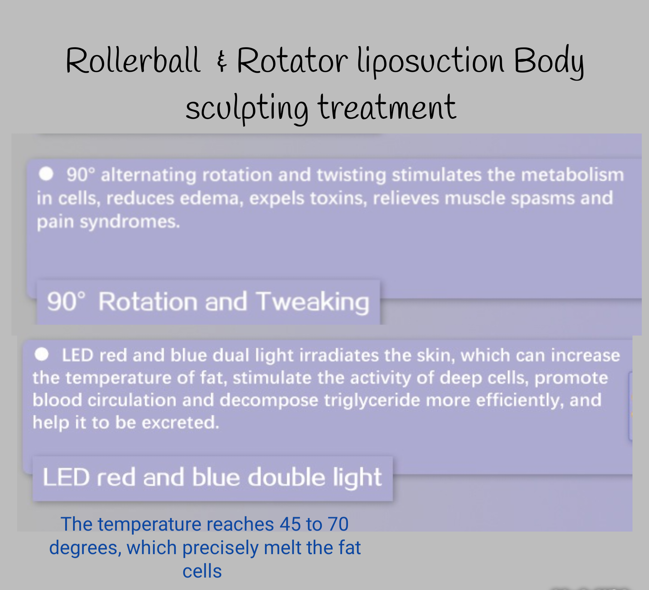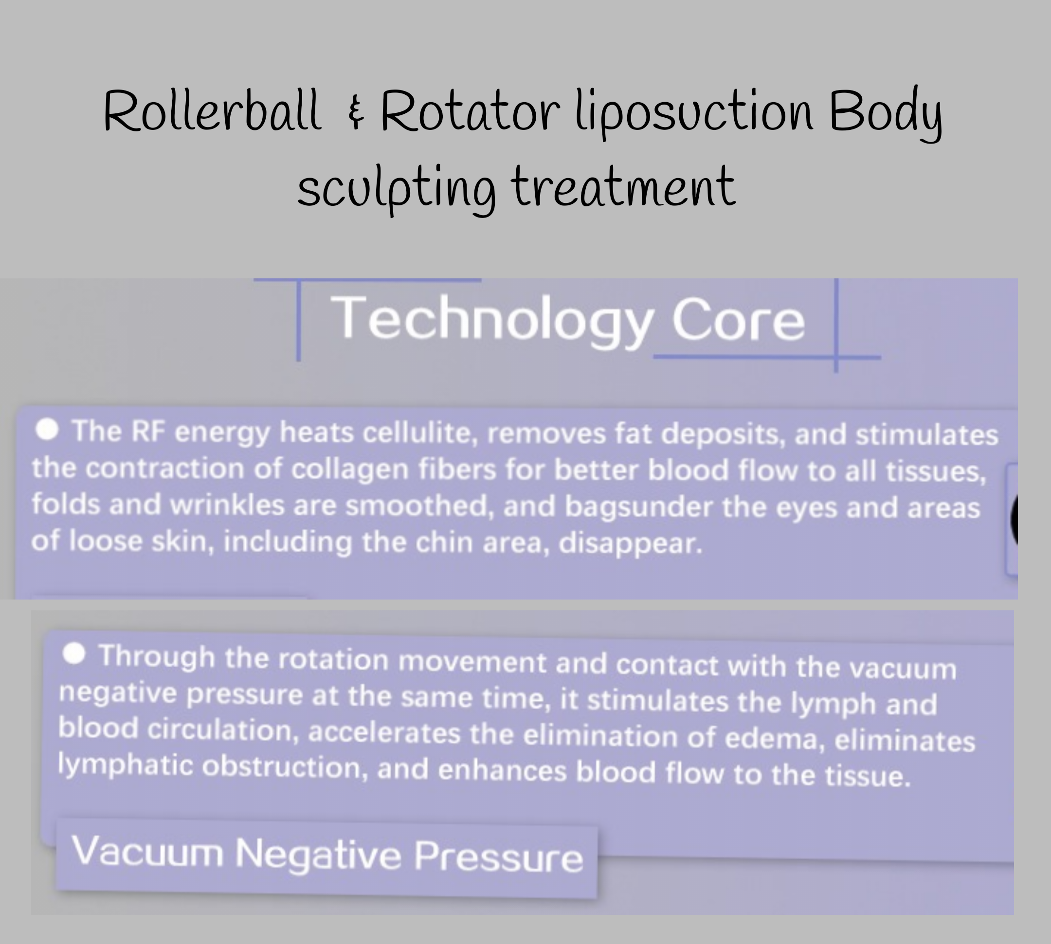 NEGATIVE PRESSURE ROTATOR RF & INNER BALL ROLLER LIPOSUCTION FOR FULL BODY CONTOURING, RESHAPING, TONING, LYMPHATIC DRAINAGE AND CELLULITES REMOVAL.