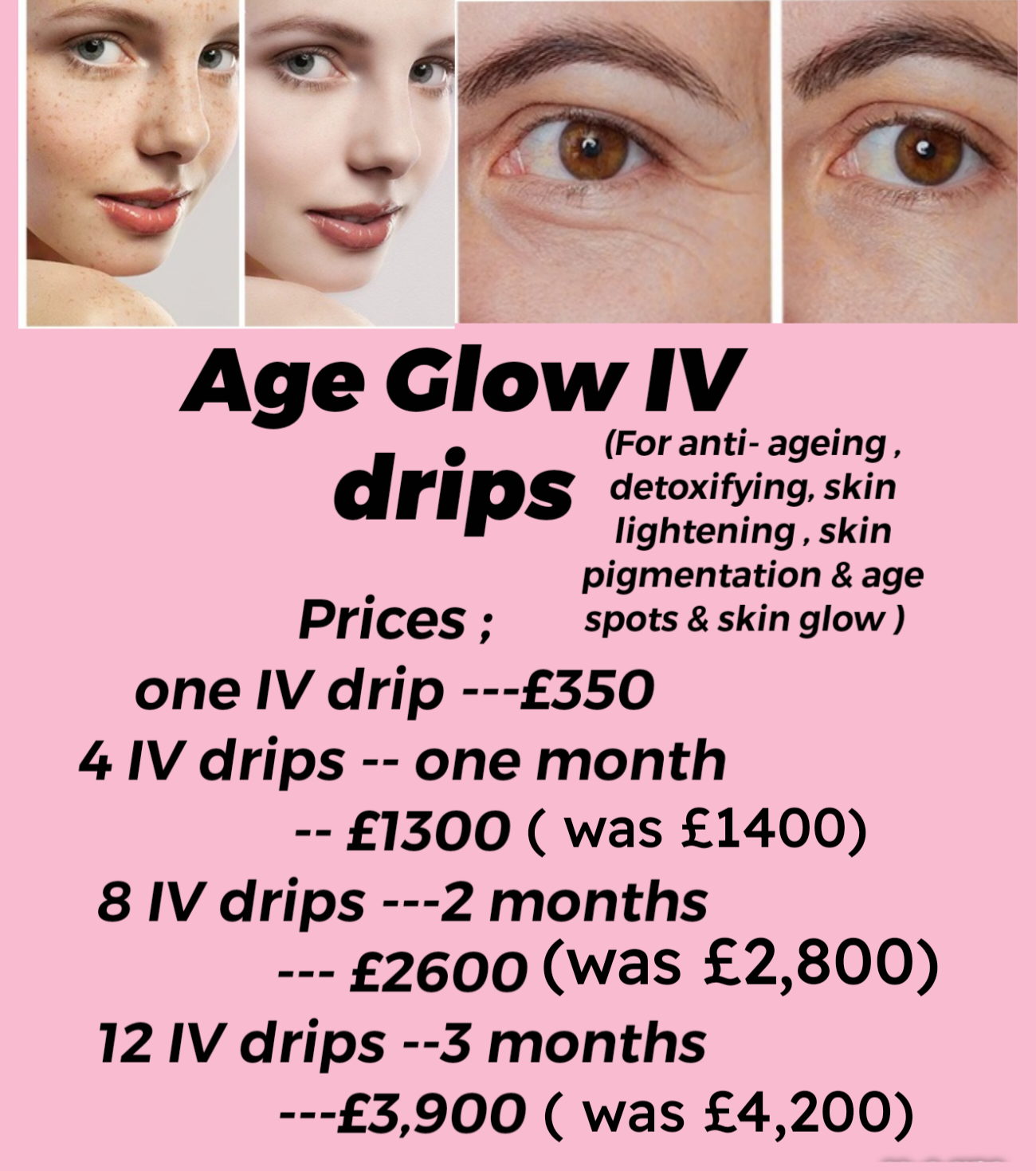 4 IV drips ( one months package) –Ā£1300( was Ā£1400).