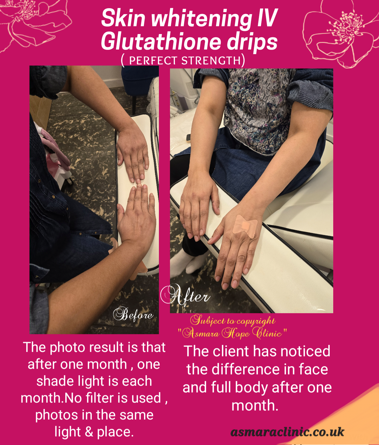 Skin whitening IV drip ( perfect strength) ;
